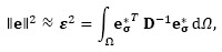 En la ausencia de otros tipos de errores, el error de discretización de elementos finitos se define como e = u - uh. Para cuantificar la calidad del campo uh se suele evaluar la norma energética del error e, la cual se define como: