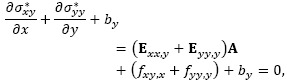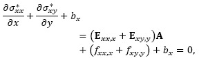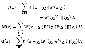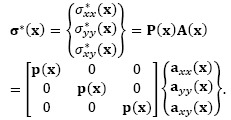 (15 )El formato de la ecuación (15), que considera las tres componentes del campo de tensiones en una sola ecuación, resulta útil para imponer las ecuaciones de restricción utilizadas para imponer las condiciones de equilibrio en la reconstrucción.