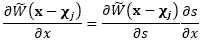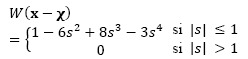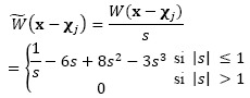 , para los cuales el campo de tensiones ya está calculado. En (18), W es la función de ponderación de MLS, la cual ha sido tomada como una función de cuarto orden tal que s