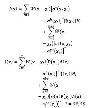 (16)Para obtener los coeficientes A utilizamos la aproximación continua de MLS descrita en [23], donde se minimiza el siguiente funcional: