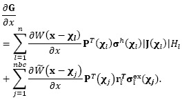 (5)donde L es el operador diferencial de elasticidad lineal, D es la matriz con la elasticidad del material y G es el operador que proyecta las tensiones para el equilibrio en el contorno.