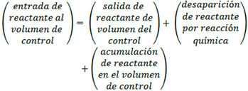 El punto de partida para el diseño de un reactor es un balance de materia propio del reactante (o producto) a utilizar, sobre determinado volumen de control.