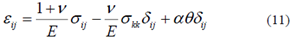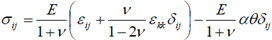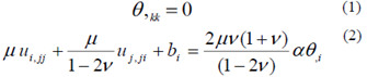 donde θ es la temperatura, ui los componentes de desplazamiento, μ es el módulo de corte, v es la relación de Poisson y α es el coeficiente lineal de expansión térmica.