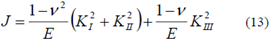 donde E es el módulo de elasticidad del material. Luego, a partir de un proceso de desacople de la ecuación (13), es posible obtener los factores de intensidad de esfuerzo de acuerdo con el procedimiento desarrollado por Balderrama [16].