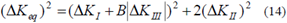 Una vez definidos los valores del factor de intensidad de esfuerzo en sus tres modos KI, KIIy KIII a través del programa computacional diseñado para tal fin, es posible determinar el rango equivalente de ese factor (ΔKeq), a través de la siguiente ecuación propuesta por Gerstle [17]: