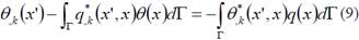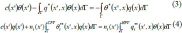 donde θ*(x',x), q*(x', x), θi**(x’,x) y qi**(x´, x) denotan las soluciones fundamentales de las temperaturas y flujos de calor en el punto x debidas a una fuente de calor puntual colocada en la posición x'. El término c(x') es una constante que depende de la geometría local, que para un contorno suave c = 1/ 2. En el caso de la ecuación de flujo ni(x'), corresponde al vector normal al contorno en el punto de colocación, se supone que en las superficies de la grieta n¡(x+)= -ni(x-).