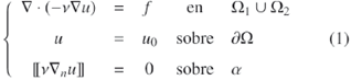 Se considera un dominio Ω ⊂ ℝ2, abierto y acotado con frontera suave dividida en dos partes por la interfase a, que será una curva suave que completará el dominio Ω1 ∪ Ω2 ∪ α (ver Figura 1). En este dominio se desea resolver el siguiente problema: