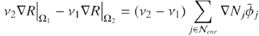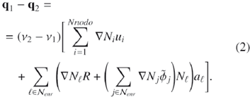 Observe que la condición (2) se puede imponer en cada punto P є α (en un elemento enriquecido Ωk ) y representa una restricción algebraica sobre las incógnitas uiy