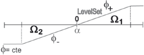 Denotada por ϕ, esta función permite establecer donde está ubicado cada punto del dominio, respecto a la interfase α. Para efectos prácticos, ϕ se toma como la función distancia a la interfase, con signo: