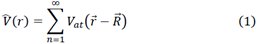 (r) es el potencial sobre el átomo establecido como inicio de la red, y el potencial generado debido a los vecinos más cercanos se define por la expresión (2) [2], [3].
