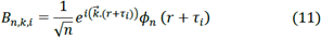 Los desarrollos anteriores consideraban que solo existía un átomo por celda unitaria; sin embargo, se puede expandir el análisis a átomos interiores a la red unitaria, adicionando un término τi, [3],[5], para el posicionamiento de dicho átomo, de lo que queda la expresión para la suma de Bloch.