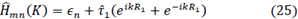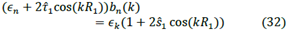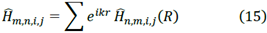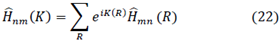 Donde el término anterior informa cómo es la transición desde el orbital 𝜙n a 𝜙m, dado por el hamiltoniano. Sin embargo, el TBM opera bajo la función de Bloch [15], que implica una solución a los paquetes de onda electrónicos en el cristal, y su respectiva modulación. Esto quiere decir que debe realizarse una transformación a las ecuaciones en función de K, y no de la posición real de los átomos en la red. Esta transformación se hace vía transformada rápida de Fourier FFT [16], de la siguiente forma: