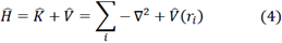 El operador de Hamilton tiene en cuenta la contribución para los n átomos, y por esto se establece como sumatoria, bajo el índice i, que recorre todas las partículas. Ya con este operador definido, se puede hacer uso de la ecuación de Schrödinger, independiente del tiempo [4], [5].