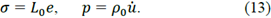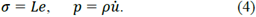 where σ is the stress field, and p is the momentum density. Stress and momentum density are related to elasticity Hooke's law and displacement wave field, respectively: