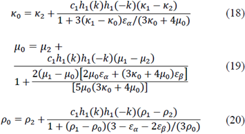 Subscripts ‘1’ and ‘2’ represent the inclusion and matrix response. The Equations (18-20) are function of volume inclusion concentration 𝑐1, the functions ℎ1(𝑘) and 𝜀𝛾, which are presented for the spherical case below: