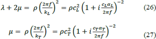 where, cT and cL denote the phase velocity, and αT and αT are the attenuation coefficients of the longitudinal and transverse waves, respectively.