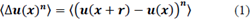 Donde u(x + r) y u(x) son velocidades a lo largo del eje x, eje paralelo al flujo, para dos puntos separados por una escala o distancia, r, y 〈-〉 indica valores promedio.