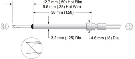 Todos los sensores fueron fabricados de manera manual, con hilos de aleación de platino y rodio (al 10 %) de 2,54 μm de diámetro. Los hilos fueron calibrados usando el enfoque de ángulo efectivo, antes y después de cada medición, para encontrar las constantes de la ley de King [7], que luego permitirían relacionar la velocidad del flujo con el voltaje necesario para mantener el hilo a la temperatura fijada dentro del flujo.