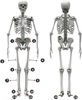 Para la estimación de la posición en cada uno de los puntos de interés de la cadena cinemática, se utilizó el modelo de ubicación de marcadores pasivos Helen Hayes. Este método se utiliza en la investigación sobre marcha y consiste en 15 marcadores pasivos, ubicados estratégicamente sobre el sujeto de prueba, para generar un modelo del tren inferior (véase figura 2). Tal como lo exponen Valencia-Aguirre et al.[1], el análisis de marcha es útil para determinar las reacciones sobre la articulación de la rodilla, debido a la naturaleza de su movimiento, en un plano donde las fuerzas que producen los grupos musculares aislados sobre la rodilla son representativas.