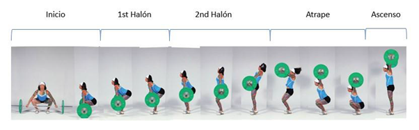 La potencia máxima desarrollada sin el uso de la barra por la principiante a lo largo de un ciclo de movimiento es mayor: 63,21 % respecto a la profesional, debido a las aceleraciones durante las zonas de transición. La ejecución del movimiento con barra y sin barra también afecta los valores máximos de potencia en 8,91 % para la principiante y 68,61 % para la profesional. En términos generales, los parámetros de fuerza y potencia permiten evidenciar un mayor potencial de lesión en los deportistas cuando se realiza el movimiento con una técnica inapropiada, pues periodos de transición adicionales requieren fuerzas de compensación adicionales sobre la articulación.
