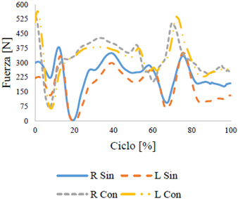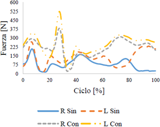 A continuación, se presentan las gráficas de fuerza sobre la articulación de la rodilla, obtenidas en el desarrollo del ejercicio.