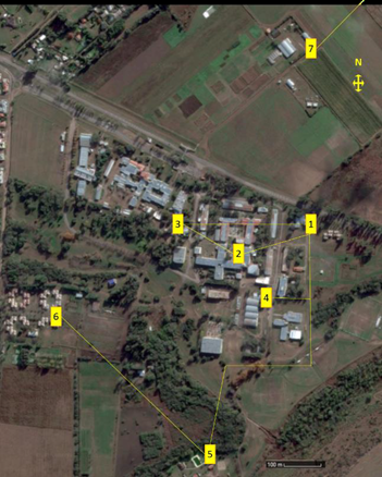 El campus de la Universidad se ubica sobre la Ruta Nacional 36, kilómetro 601, Río Cuarto, Córdoba. El sistema principal de distribución eléctrica de la UNRC se encuentra conectado a la línea de 13,2 kV de la Empresa Provincial de Energía Eléctrica de Córdoba (EPEC). El predio de la UNRC cuenta con siete subestaciones de media a baja tensión, tres de las cuales son aéreas y cuatro a nivel. En la figura 2 se puede apreciar la ubicación geográfica de las subestaciones.