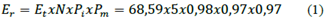 Para calcular la energía real, al valor de la energía teórica deben aplicársele los siguientes factores de corrección: pérdidas por conseguir la indisponibilidad de máquinas y subestación = 0,98; pérdidas por transporte = 0,97; pérdidas por mantenimiento = 0,97. Las pérdidas por la no disponibilidad de máquinas y de subestación son de Pi = 0,98. Las pérdidas por transporte, que son las pérdidas que se producen en la línea de evacuación del parque, son de Pt = 0,97. Los anteriores son valores para parques, aunque en este caso se tienen solo cuatro máquinas para cubrir el 8 % necesario, lo que resulta conservativo. Las pérdidas por mantenimiento contemplan los momentos en los que el conjunto no puede estar trabajando, y estas tienen un valor de Pm = 0,97.