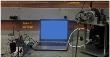 Los equipos utilizados para adquirir la señal fueron una tarjeta de adquisición de datos National Instruments, referencia NI 9234, en un chasis NI cDAQ-9172 y tres acelerómetros de propósito general de sensibilidad 100 mV/g. La interfaz de adquisición y el procesamiento de los datos se realizó en Python®. La calibración de los acelerómetros utilizados para la adquisición de datos se realizó utilizando un shaker, marca Hardy Instruments, con una frecuencia de 100 Hz y una amplitud de 9.8 m/s2 (valor RMS).