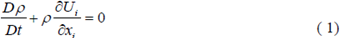 La ecuación de continuidad para flujo incompresible, en donde la densidad del fluido varía en el tiempo, está representada en la ecuación (1).