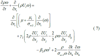 Menter [18] presentó el modelo de turbulencia SST para estudiar el flujo de fluidos, realizando cálculos en la región de altas velocidades (seno del líquido), utilizando el modelo k-ɛ; y para las regiones de bajos números de Reynolds (cerca de las paredes), aplicó el modelo k-ω. Este modelo fue seleccionado para dar solución general al problema de cálculo cerca de las zonas en las que se presentan cambios en los gradientes de cada una de las variables del sistema.