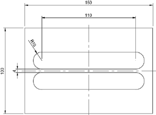 Se emplearon platinas de aluminio AA5052-H32 como material base para la fabricación de los MMC superficiales por FSP. Esta aleación de aluminio no es tratable térmicamente, y su composición química nominal se encuentra en la Tabla 1[7]. Se prepararon 3 placas de aluminio de 3/16" de espesor, 150 mm de longitud y 50 mm de ancho, además, se maquinaron dos ranuras en cada una de ellas de 110 mm de longitud, 20 mm de ancho y 0.1 mm de profundidad, como se muestra en la Figura 2.