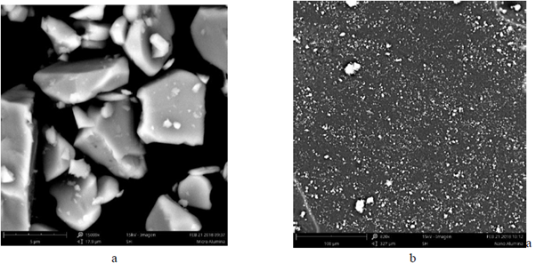 Como material de refuerzo se emplearon dos tamaños de partículas de alúmina fase gamma de forma independiente: micro (5μm) y nano (50nm). En laFigura 3 se presentan algunas imágenes de micrografías SEM (SE) de las partículas. En la Figura 3a y la Figura 3b se observa distribución de micropartículas a 900x y 15000x respectivamente. En la Figura 3c presenta la distribución de nanopartículas a 820x, donde es posible observar cúmulos que se distribuyen de forma relativamente uniforme.