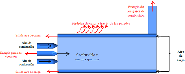 Es evidente que la mayor pérdida de energía está asociada con la porción de gases que es evacuada por la chimenea; esto debido a que la energía sensible transportada por estos no puede aprovecharse y se pierde en la atmósfera, a diferencia de los gases que son evacuados por el regenerador.