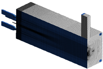 Adicional al análisis experimental se realizó una simulación utilizando dinámica de fluidos computacional (CFD por sus siglas en inglés) a través del programa Ansys - Fluent, y para ello se construyó un mallado hexaédrico de 405632 celdas. Debido a la geometría del horno se usó una condición de simetría en el plano axial en dirección longitudinal, para reducir el costo computacional. El mallado se muestra en la figura 3.
