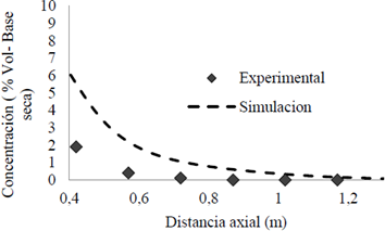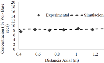 Adicional a lo mencionado previamente, las diferencias entre los valores numéricos y experimentales están asociadas al hecho de que numéricamente el valor mostrado es de carácter puntual, mientras que experimentalmente el gas succionado por la sonda está asociado a una pequeña región volumétrica de tamaño desconocido, lo que genera variaciones en la medición.