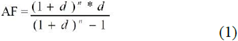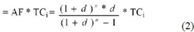 Donde d es la tasa de depreciacion y n, la vida útil de los activos a remunerar Factor Anual. A su vez, se debe calcular el valor presente anual (PVA) para el circuito i: