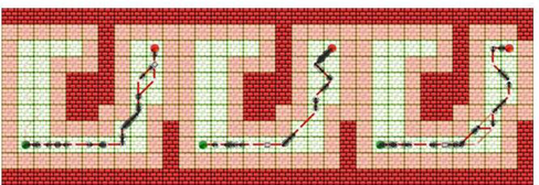 Cuando las hormigas encuentran la ruta hacia una fuente de alimento, depositan feromonas con el fin de que otras hormigas de la colonia puedan seguir el camino [13,19]. El presente caso de estudio utiliza un sistema multirobot para encontrar rutas óptimas, libres de obstáculos en entornos no estructurados (figura 4).