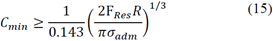 donde M es el momento flector máximo que soporta la viga en voladizo y 𝜎adm es el esfuerzo normal admisible del material usado para la fabricación del álabe. El momento flector máximo es igual al producto de la fuerza resultante, sobre el álabe y el radio del álabe. Por lo tanto, la Ecuación (13) puede reescribirse como la Ecuación (15).