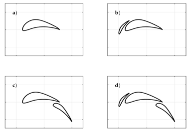 Para el diseño de álabes, existen varias configuraciones de diseño de un perfil multielemento, como se ve en la Figura 1. Estas configuraciones consisten en la combinación de solapas alrededor de un perfil principal del álabe, para obtener un perfil óptimo con el coeficiente de elevación máximo.