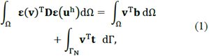 donde ε representa las deformaciones; D, la matriz de propiedades elásticas del material; b, las cargas volumétricas, y t, las tracciones de Neumann en ΓN.