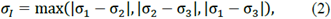 donde σi , i = 1: 3 representan los esfuerzos principales, y están relacionado con el cortante máximo τmax = σ𝐼/2.