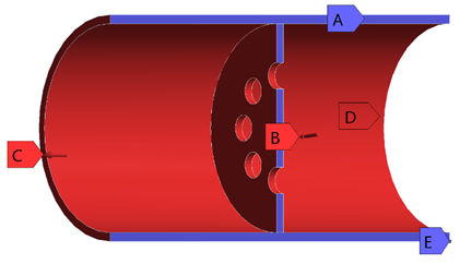 Por otro lado, la temperatura de diseño de equipos y sistemas de tuberías se define, generalmente, como la temperatura correspondiente a la más severa condición de temperatura y presión coincidentes a la que va a estar sujeto el sistema [12]. La temperatura de diseño se toma de 79 °C; esta variable se aplica a toda la geometría, como representación del contacto entre el flujo de gas y la parte interna del equipo.