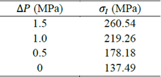 donde p es la densidad del fluido, D es el diámetro de la tubería, d relaciona el diámetro de los agujeros y V es la velocidad del fluido. La variación de presión ΔP, determinada por las condiciones de operación, tiene un impacto en la solicitación mecánica del interno. En la Tabla 2 se observa la variación en la intensidad del esfuerzo causada por una caída de presión ΔP. Se observa que, para las dimensiones especificadas, la intensidad de los esfuerzos se acerca al esfuerzo admisible de diseño para caídas de presión muy bajas. Asimismo, para ΔP = 1,5 MPa la intensidad de esfuerzo se acerca al límite de fluencia del material, siendo una condición crítica.