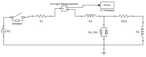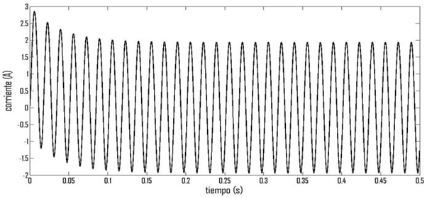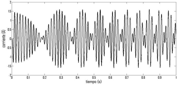 La figura 7 muestra el circuito equivalente del motor de inducción modelado en Matlab usando la librería SimPowerSystems, con los parámetros indicados en la tabla 1 para el algoritmo de búsqueda de armonía. El interruptor se agrega para simular el transitorio de la corriente del estator cuando se arranca el motor bajo condiciones nominales. La figura 8 muestra la simulación del transitorio en la corriente del estator bajo condiciones nominales.