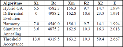 La tabla 1muestra los parámetros estimados usando 5 algoritmos de optimización diferentes. En particular, el algoritmo genético híbrido (combinando el algoritmo genético con un algoritmo de búsqueda local) arrojó buenos resultados, igualmente el algoritmo de búsqueda de armonía. Es importante destacar que aun cuando el algoritmo de evolución diferencial obtiene el menor valor para la función de costo E, predice un valor de cero para X2, lo cual no tiene sentido físico. Los mejores resultados se obtuvieron cuando se restringió (constrained minimization) el rango de valores que cada parámetro puede tomar a (Ohms): 0≤X1≤100, 200≤Rc≤5000, 1≤Xm≤1000, 1≤R2≤100, 0≤X2≤100. Rangos aproximados de valores para estos parámetros se pueden obtener del ensayo en vacío considerando la caída en R1 y X1 despreciable. Los demás rangos son razonables y se pueden obtener de los resultados de los algoritmos de optimización, ya que, cuando el rango tomado es incorrecto, los parámetros estimados toman el valor de uno de los límites, lo que indica que el rango no es apropiado.