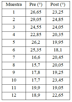 Se siguieron los mismos parámetros establecidos para la evaluación de los ángulos con el pretratamiento.