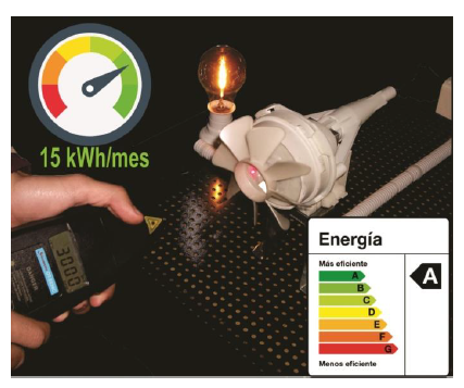 Según la Norma IRAM 62480:2017 [32] se obtuvo una Eficiencia energética (EE) Tipo: A. Con un consumo de energía activa inferior a 55% del valor nominal; lo que representa 15 kWh/mes. Valor que se calcula durante una (1) hora por día a máxima potencia (25 vatios para el prototipo).