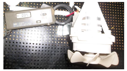 Específicamente, para el desarrollo del segundo prototipo (año 2018) se debió adaptar un motor sincrónico de tipo PMSM (con rotor de imanes parmanentes de ferrite), obtenido a partir del estator de una electrobomba de lavavajillas de 65 (watts) de potencia nominal y acoplarlo a las paletas del mismo rotor de un motor a-sincrónico de espiras de sombra (o espira de fragger) de microondas.
