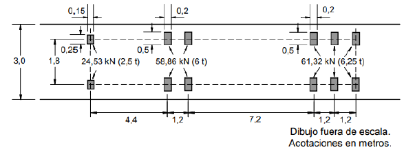 Se consideran las cargas vivas de diseño IMT 66.5 incrementadas por impacto de acuerdo a la normativa vigente en México.