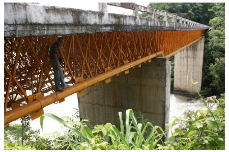 En México se han empleado las armaduras mixtas tridimensionales, conocidas como tridilosas, para salvar claros medianos en puentes libremente apoyados y continuos, como se observa en la Figura 1 del Puente Boca Lacantún.